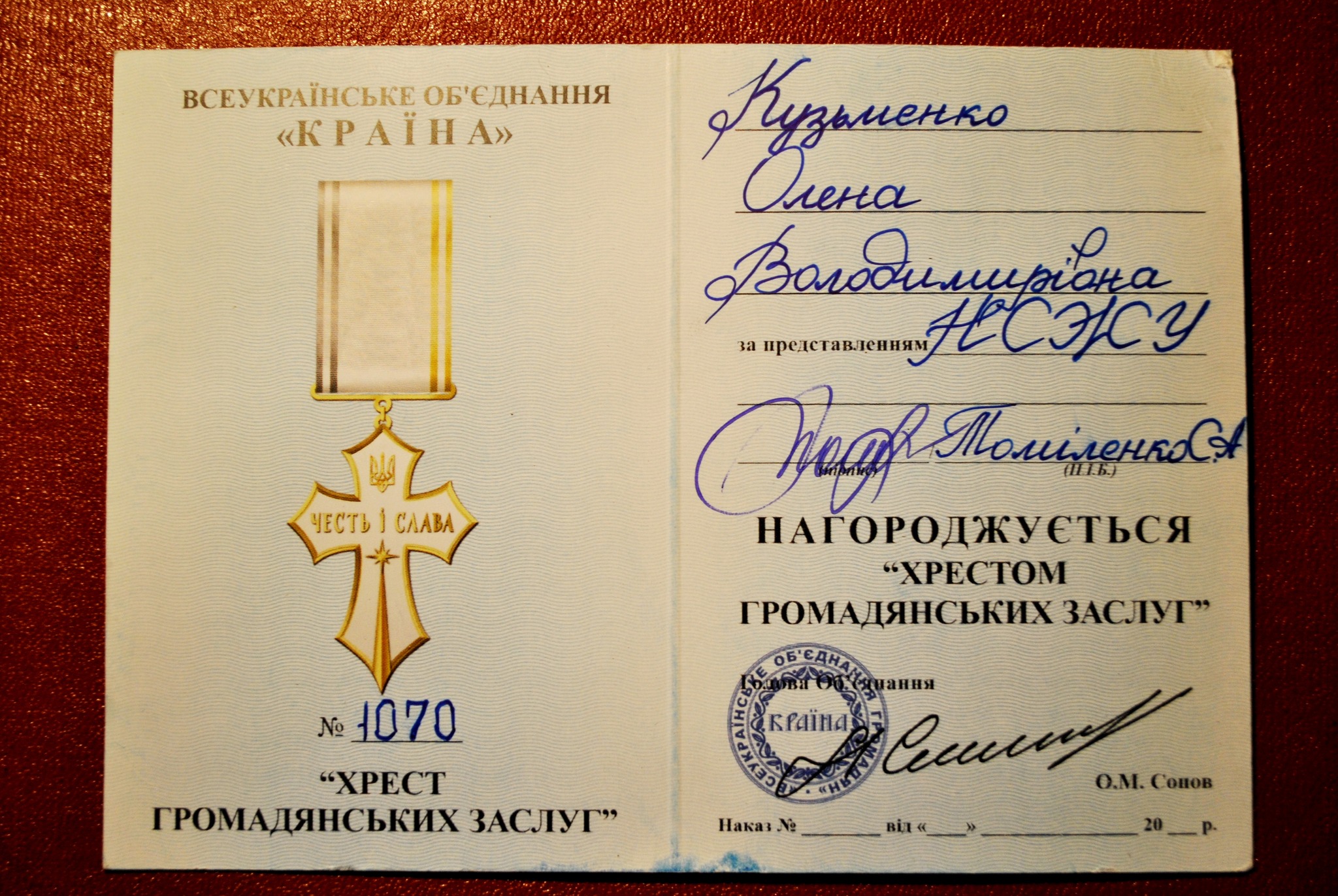ℹ️ Знак «Хрест громадянських заслуг» вручається тим, хто своєю плідною працею наближає перемогу без зброї в руках.