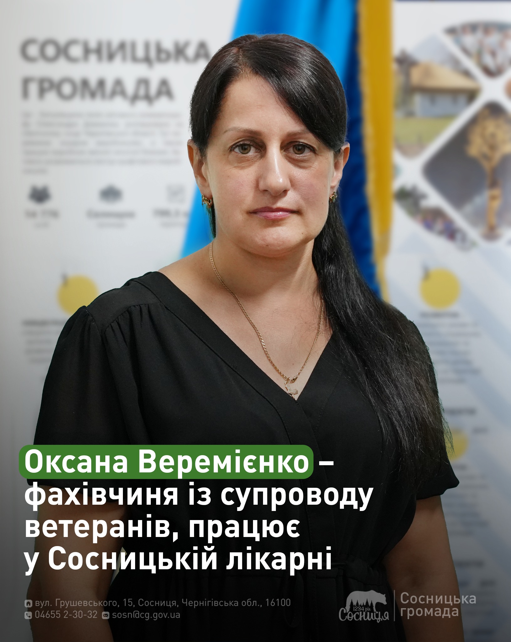 Знайомтесь – Веремієнко Оксана Олексіївна. Її кабінет наразі тимчасово розташований у приймальні директора Сосницької лікарні – поки триває облаштування її власного робочого простору.